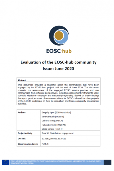 DOWNLOADThis publication - available on Zenodo - provides a snapshot about the communities that have been engaged by the EOSC-hub project until the end of June 2020.