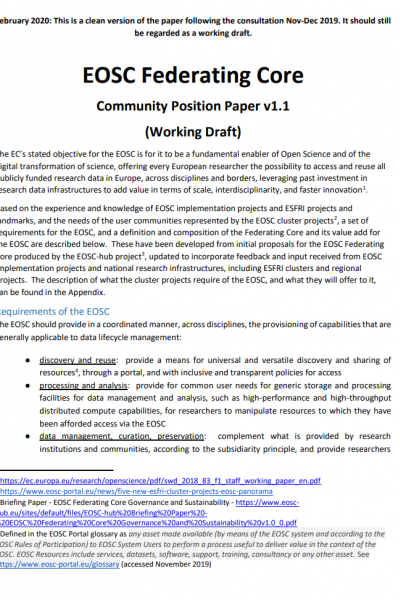 DOWNLOADA post-consultation version of a (working draft) community position paper on the EOSC Federating Core (February 2020)