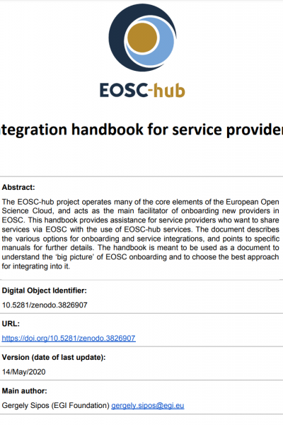 DOWNLOADThis handbook - available on Zenodo - provides assistance for service providers who want to share services via EOSC with the use of EOSC-hub services. (May 2020)