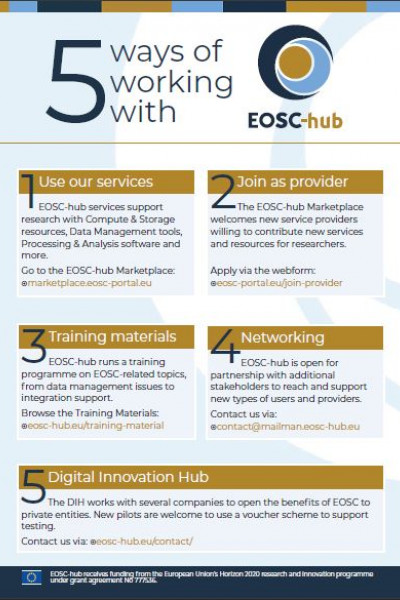 DOWNLOADEOSC-hub Flier: 5 Ways of Working With EOSC-hub (April 2020)