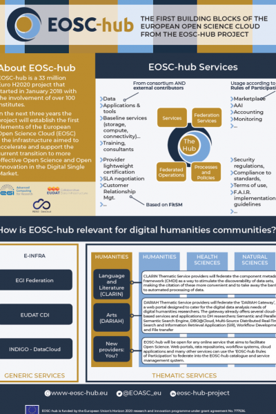 DOWNLOADEOSC-hub poster showcasing the project's relevance for Digital Humanities (June 2018).